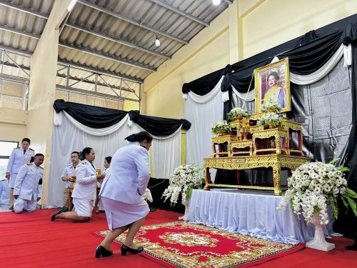 ✨ว่าที่ร้อยตรีหญิง สรวีย์ เหมือนเพ็ชร์ นายอำเภอหนองม่วง พร้อมด้วย หัวหน้าส่วนราชการ หัวหน้าหน่วยงานรัฐวิสาหกิจ ผู้บริหารองค์กรปกครองส่วนท้องถิ่น ผู้บริหารสถานศึกษา กำนัน ผู้ใหญ่บ้าน ฯลฯ ภาคเอกชน จิตอาสา และประชาชนชาวอำเภอหนองม่วง ร่วมพิธีถวายน้ำสรงพระบรมศพเบื้องหน้าพระฉายาลักษณ์สมเด็จพระนางเจ้าสิริกิติ์ พระบรมราชินีนาถ พระบรมราชชนนีพันปีหลวง และร่วมพิธีลงนามเเสดงความไว้อาลัย เพื่อเป็นการแสดงออกถึงความจงรักภักดีและเพื่อให้พสกนิกรอำเภอหนองม่วง ร่วมกันถวายความอาลัย แด่สมเด็จพระนางเจ้าสิริกิติ์ พระบรมราชินีนาถ พระบรมราชชนนีพันปีหลวง โดยบรรยากาศเต็มไปด้วยความโศกเศร้าเสียใจ