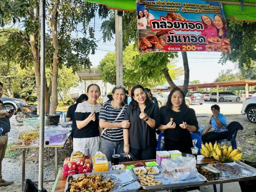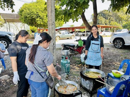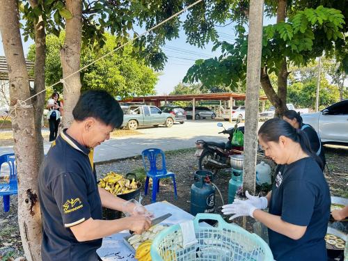 ✨ในการนี้นางวรรณวรัทย์ คำปนารถ พัฒนาการอำเภอหนองม่วง ร่วมกับคณะกรรมการพัฒนาสตรีหมู่บ้าน (กพสม.) บ้านหนองกลาง หมู่ที่ 8 ตำบลชอนสมบูรณ์ , บ้านใหม่ศรีอุดม หมู่ที่ 9 ตำบลชอนสมบูรณ์ และบ้านหนองปล้อง หมู่ที่ 5 ตำบลชอนสารเดช ได้สนับสนุนอาหาร ได้แก่ ขนมวง กล้วยทอด และฟักทองทอด จำนวน 200 ชุด ให้แก่ผู้เข้าร่วมบริจาคโลหิตของอำเภอหนองม่วงในครั้งนี้