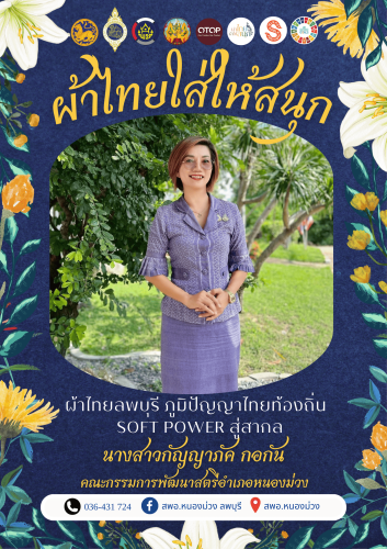 🌺จังหวัดลพบุรี ขอเชิญชวนข้าราชการ ภาครัฐ ภาคเอกชน และพี่น้องประชาชนทั่วไป ร่วมสวมใส่ผ้าไทย เพื่อสืบสาน อนุรักษ์ศิลป์ ผ้าถิ่นไทย ดำรงไว้ในแผ่นดิน และรณรงค์ ประชาสัมพันธ์ ส่งเสริม สนับสนุนการใช้และสวมใส่ผ้าไทยในโอกาสตามความเหมาะสม ภายใต้กิจกรรม “ผ้าไทยใส่ให้สนุก” ตามพระดำริสมเด็จพระเจ้าลูกเธอ เจ้าฟ้าสิริวัณณวรี นารีรัตนราชกัญญา และ “ส่งเสริมการใช้ สวมใส่ผ้าไทย เพื่อสร้างรายได้ให้ชุมชน" ตามมติ ครม. เรื่องมาตรการส่งเสริมและสนับสนุนการใช้และสวมใส่ผ้าไทย ตามความเหมาะสมของท้องถิ่น